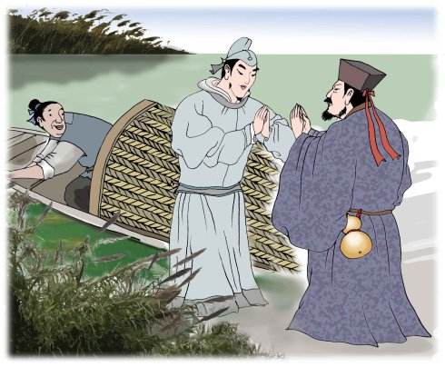 诗的前半是叙事,描写的是送别的场面。起句先写离去者,展示了李白在正要离岸的小船上向人们告别的情景。“乘舟”表明是循水道。“将欲行”表明是在轻舟待发之时。次句继写送行者。此句不像首句那样直叙,而用了曲笔,只说听见“踏歌声”。一群村人踏地为节拍,边走边唱前来送行了。这似出乎李白的意料,所以说“忽闻”而不用“遥闻”。这句诗虽说得比较含蓄,只闻其声,不见其人,但人已呼之欲出。汪伦的到来,确实是不期而至的。人未到而声先闻。这样的送别,侧面表现出李白和汪伦这两位朋友同是不拘俗礼、快乐自由的人。