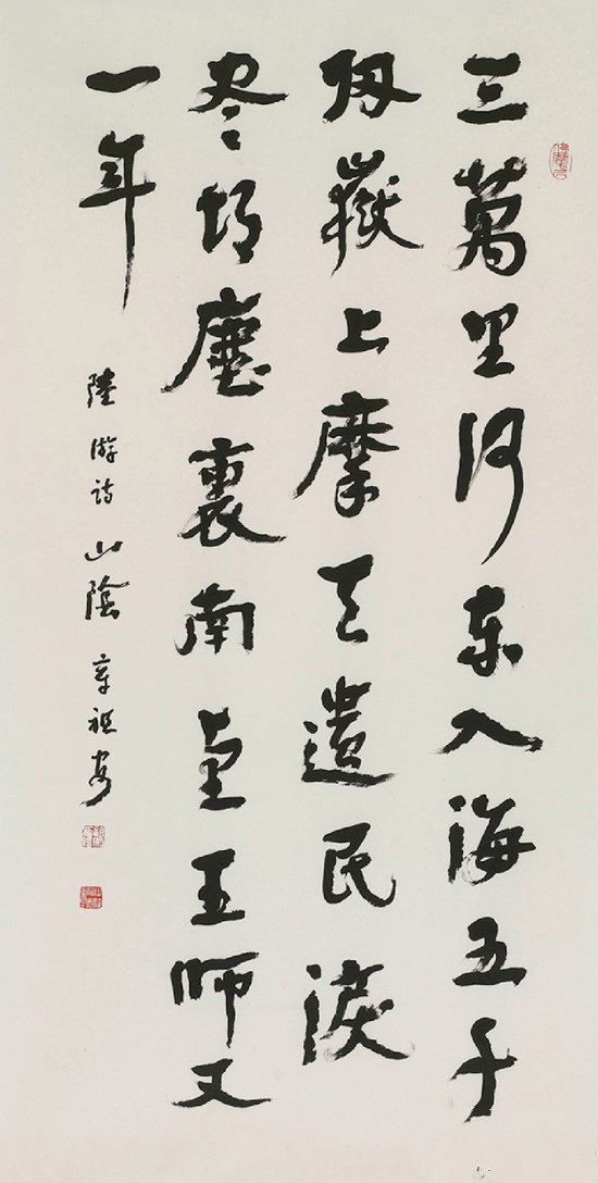 陆游这首诗,用歌颂高山大河的奇观美景来衬托神州陆沉的悲痛,抒发广大民众的情高意切来讽刺统治者的麻木不仁;将时代社会的矛盾冲突,既全面深刻地揭露,又高度集中地概括于二十八字之中。理想与现实,热爱与深愤,交织辉映,所给予人们的启示超越了时间与空间的范畴,不是“百年”“万里”所能限量的。这种恢宏壮阔的境界,在盛唐绝句中还不多见,却于中唐以至宋代诗人笔下不断有所开辟,是值得特殊注意与珍重的。