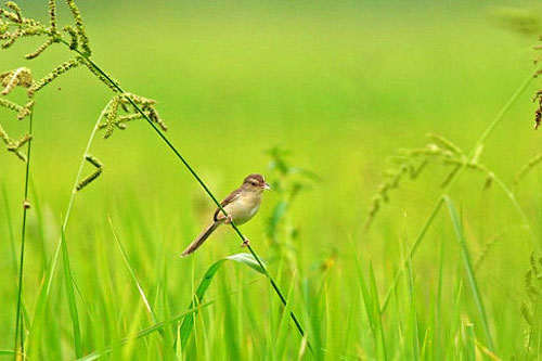 农历二月,村子前后的青草已经渐渐发芽生长,黄莺飞来飞去。杨柳披着长长的绿枝条,随风摆动,好像在轻轻地抚摸着堤岸。在水泽和草木间蒸发的水汽,如同烟雾般凝集着。杨柳似乎都陶醉在这浓丽的景色中。村里的孩子们放了学急忙跑回家,趁着东风把风筝放上蓝天。