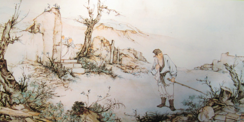有些迷蒙、有些浑噩、有些凄怆的老人,像对“松柏冢累累”不闻不见一样,对荒凉的家园的感触也变得麻木了。于是,他默默无言地舂去成熟的谷子的皮壳,采下冬葵嫩嫩的叶子。而当饭熟羹沸时,他才恍然想起不知该给谁吃。