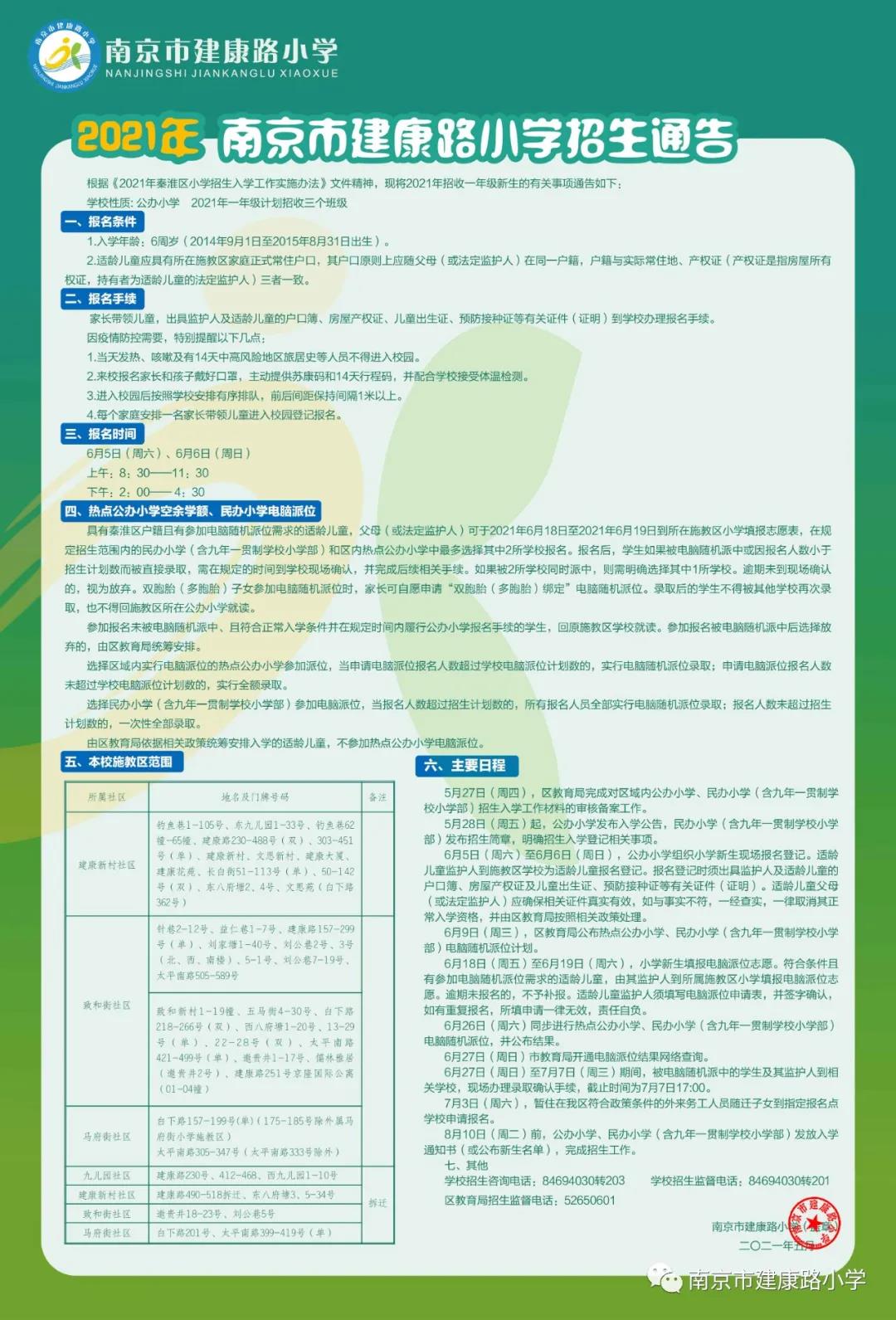2021年南京市建康路小学招生简章,含学区施教区范围划分和招生咨询电话