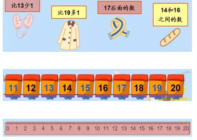 B:看数字卡片(11~20),说出卡片上的数是由几个十和几个一组成的。
