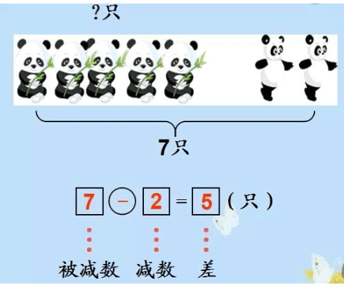 从一个数里面去掉一部分求剩下的是多少用减法。被减数-减数=差