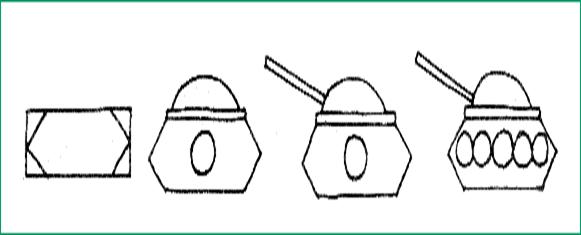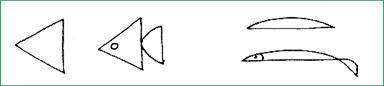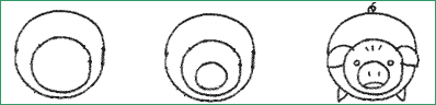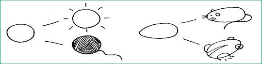 (三)借用法 借用人们熟悉的形象特征和几何图形来比喻另一物体。启发人们进行形象思维和联想,这是简笔画的特点之一。