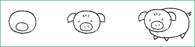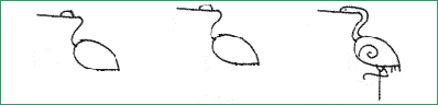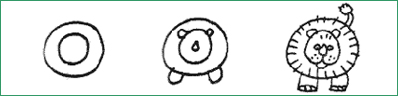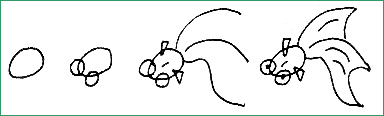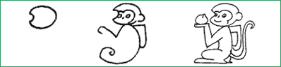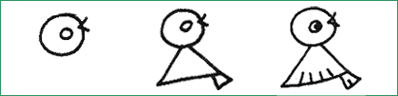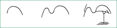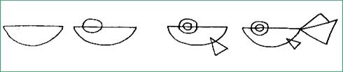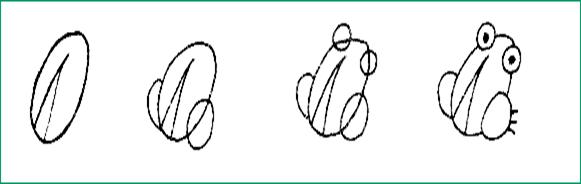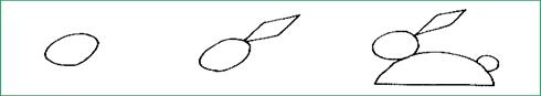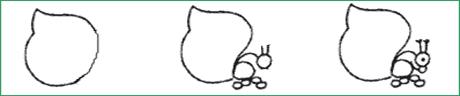(二)分解法 当物体外形线条比较复杂时,为了便于孩子学画,可以分作几步进行,然后再将分解图合并成一个完整的形象。