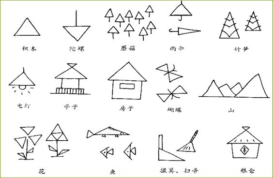 归类法即以一种形为主,表现多种物的外形特征。如:用三角形由浅入深地表现各种体。