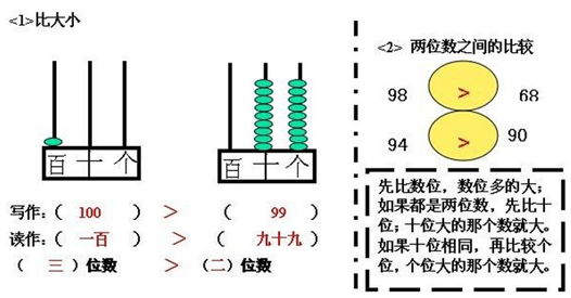 ④能比较100以内数的大小,能在具体情景中把握数的相对大小;