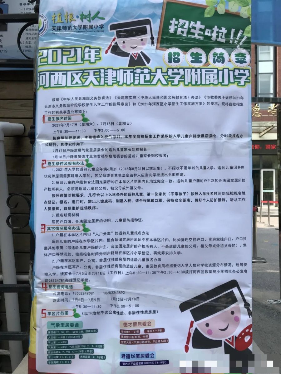 2021年天津市河西区天津师范大学附属小学招生简章,含招生咨询电话和学区范围划分