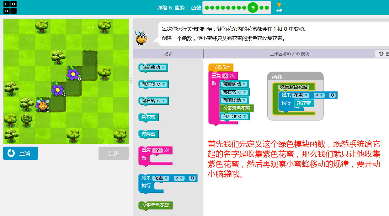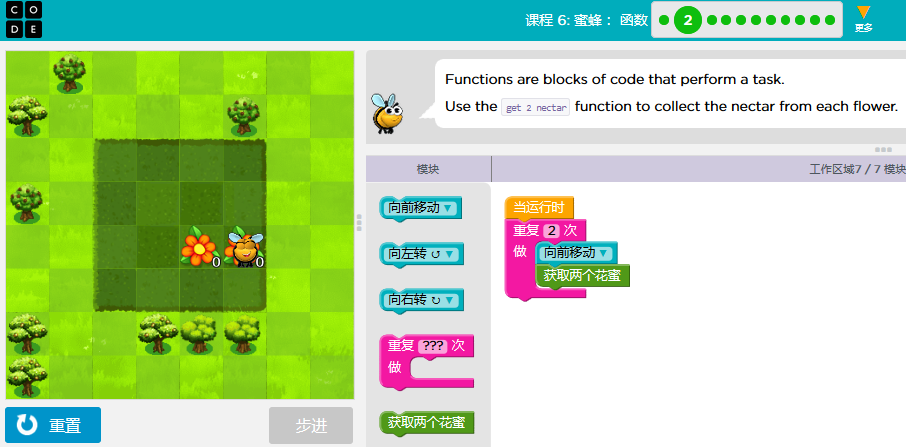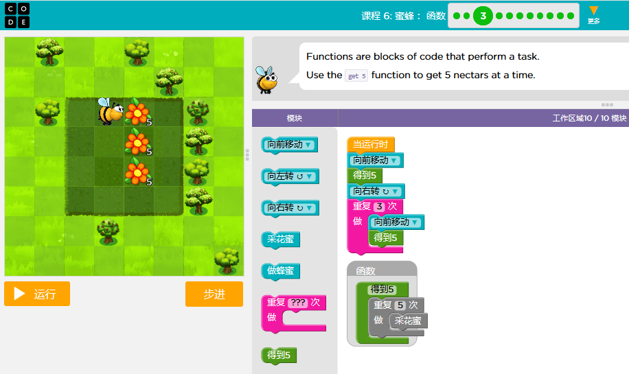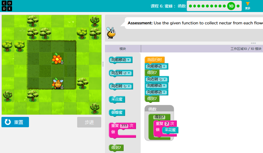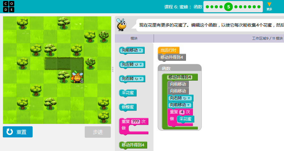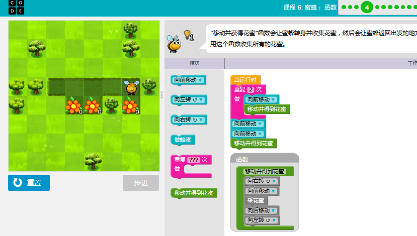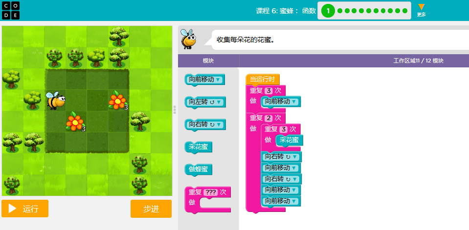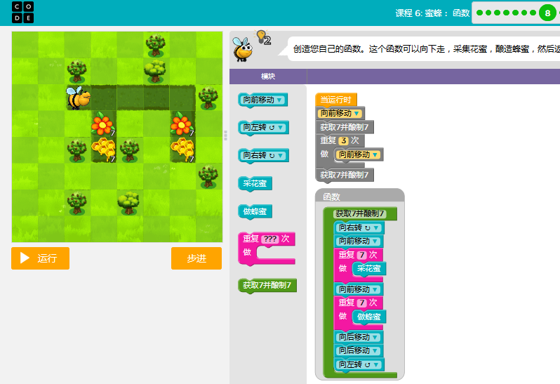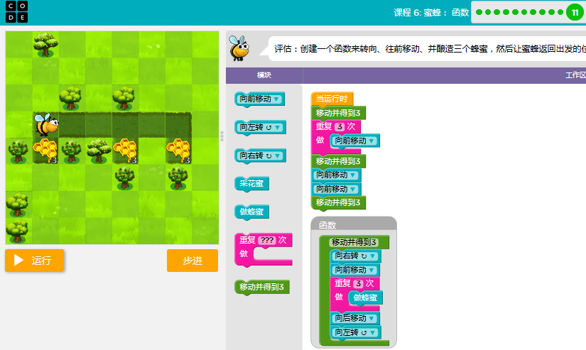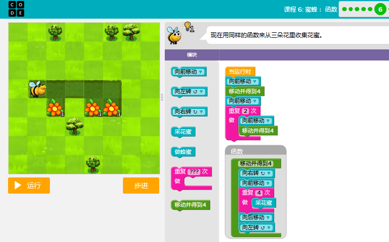 code.org答案课3-关卡课程6:蜜蜂:函数