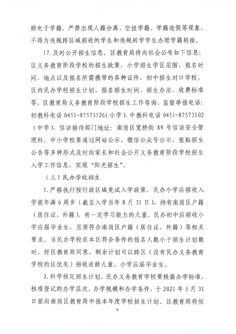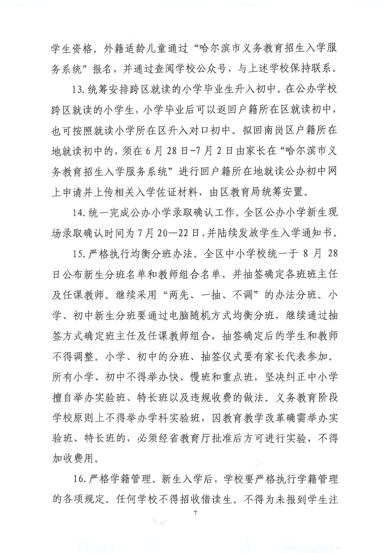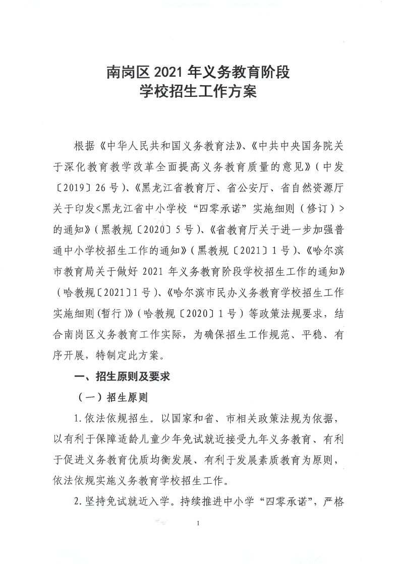 2021年哈尔滨市南岗区义务教育阶段学校初中、小学招生工作政策公布