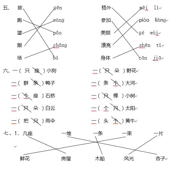 二、 生日 果皮 雨衣 自己 东西 书本 白云 马车 飞鸟 毛巾