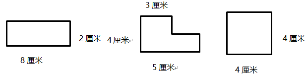 1.(8+2)×2=20(厘米) 3+4+5+2+2=16(厘米) 4×4=16(厘米)