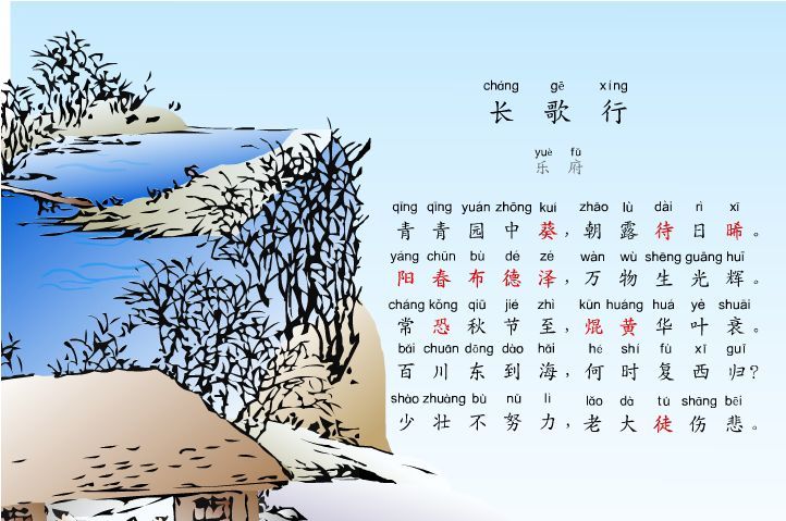 ❖长歌行:汉乐府曲题。这首诗选自《乐府诗集》卷三十,属相和歌辞中的平调曲。