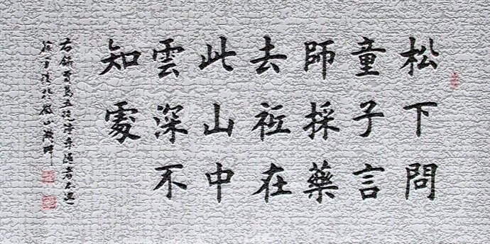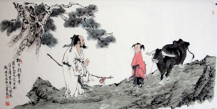 苍松下,我询问了年少的学童;他说,师傅已经采药去了山中。他还对我说,就在这座大山里,可山中云雾缭绕,不知他行踪。