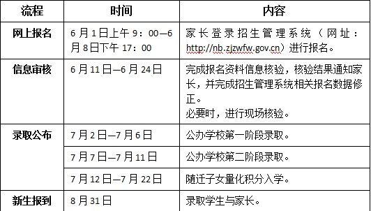 2020学年奉化区小学新生入学继续实施网上招生,即通过“宁波市幼儿园入园、义务教育入学报名招生系统”进行网上报名、审核、录取;常住户口学龄儿童继续实施“分批录取”招生办法,符合条件的流动人口学龄儿童继续实施“量化积分申评”招生办法。