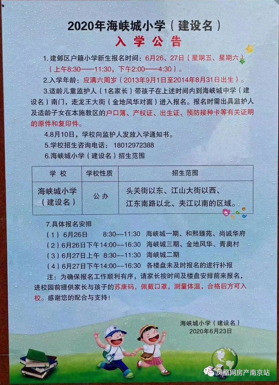 2020年南京市海峡城小学一年级招生公告