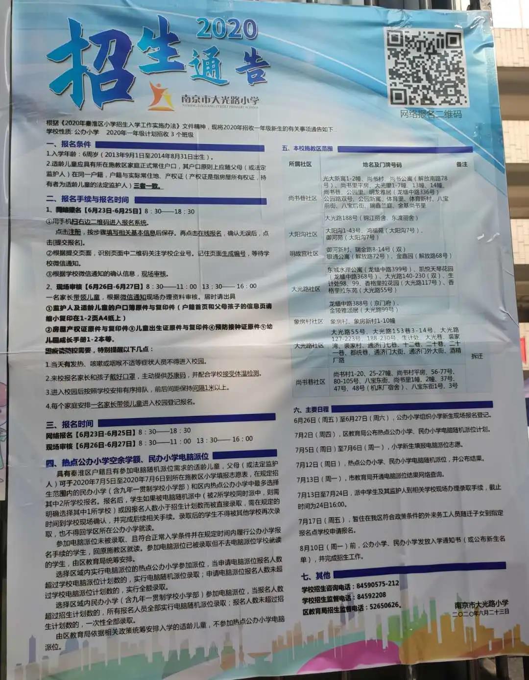 南京市大光路小学2020年招生简章入学通告