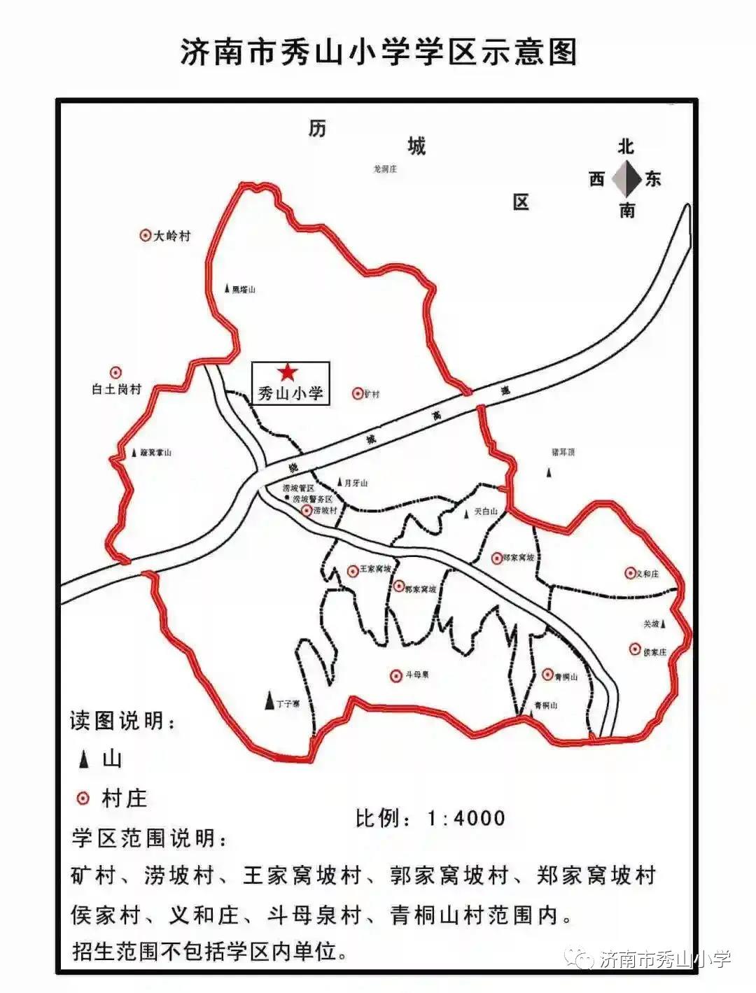 附:济南市秀山小学学区示意图