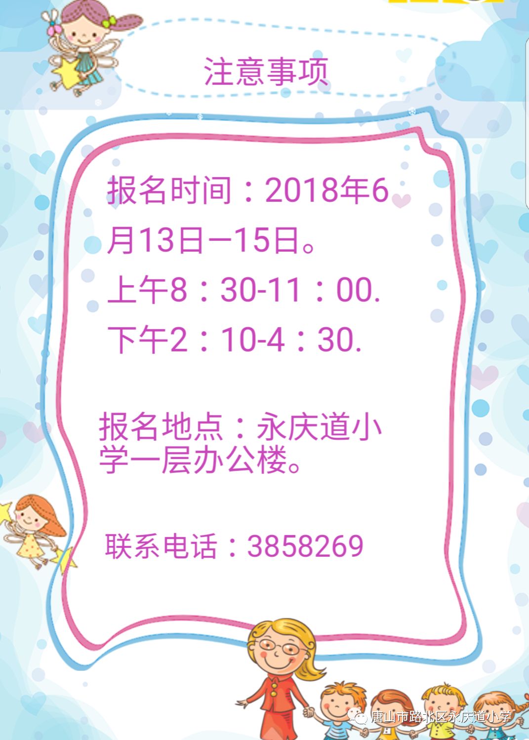 2020年唐山市路北区永庆道小学新一年级招生简章,含招生咨询电话