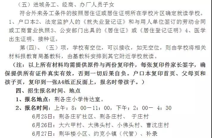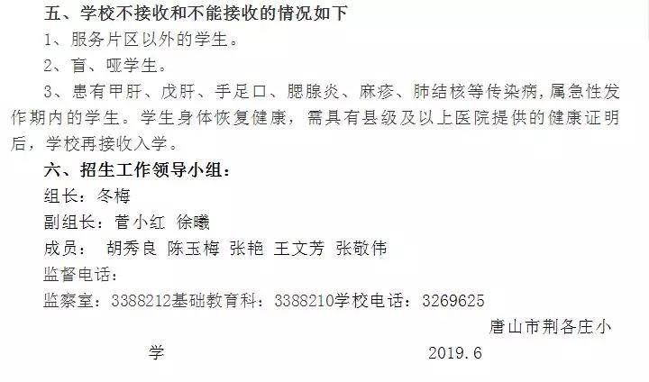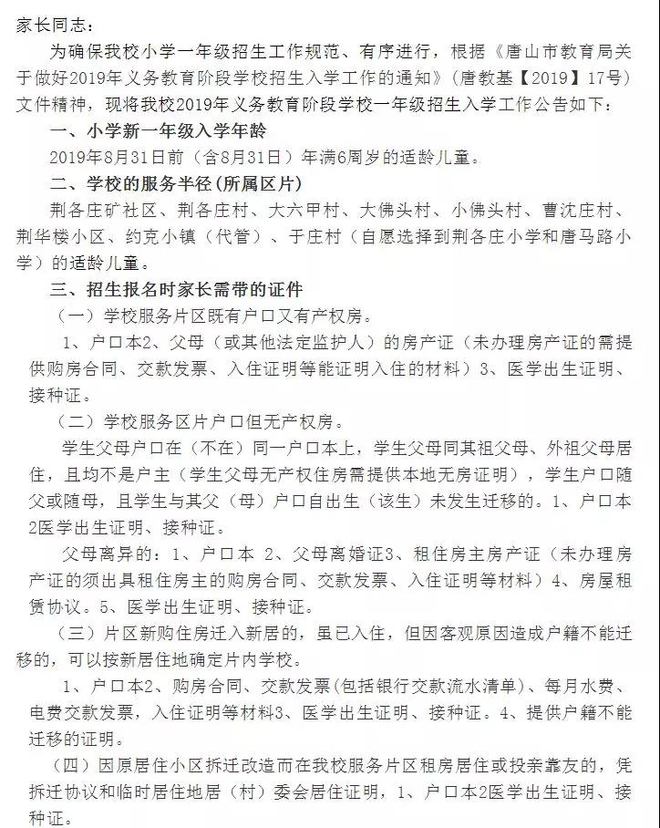 唐山市荆各庄小学2020年招生简章,含招生咨询电话