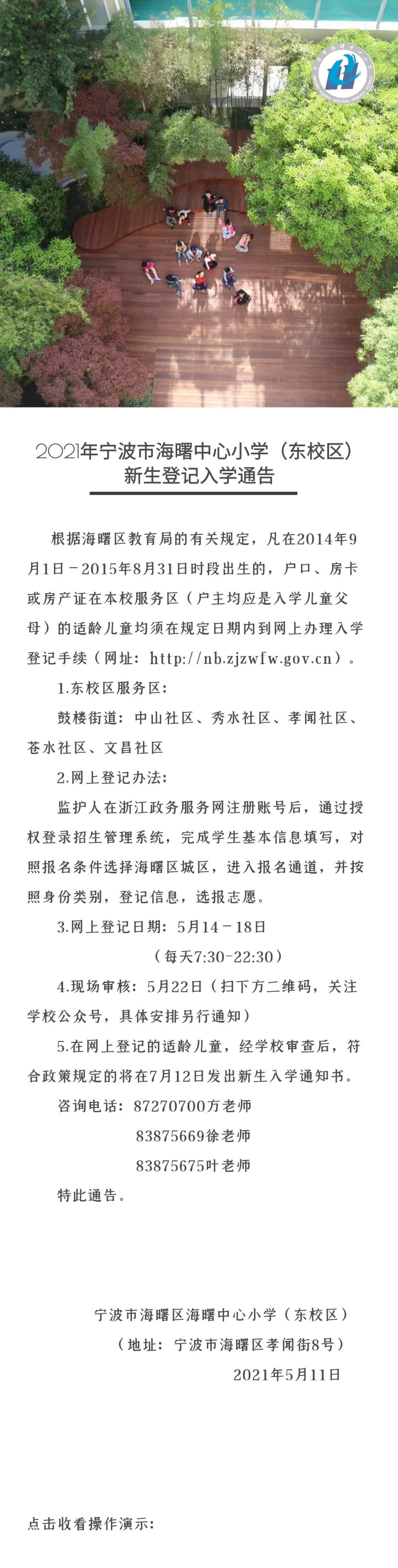 2021年宁波市海曙中心小学招生简章,含招生咨询电话
