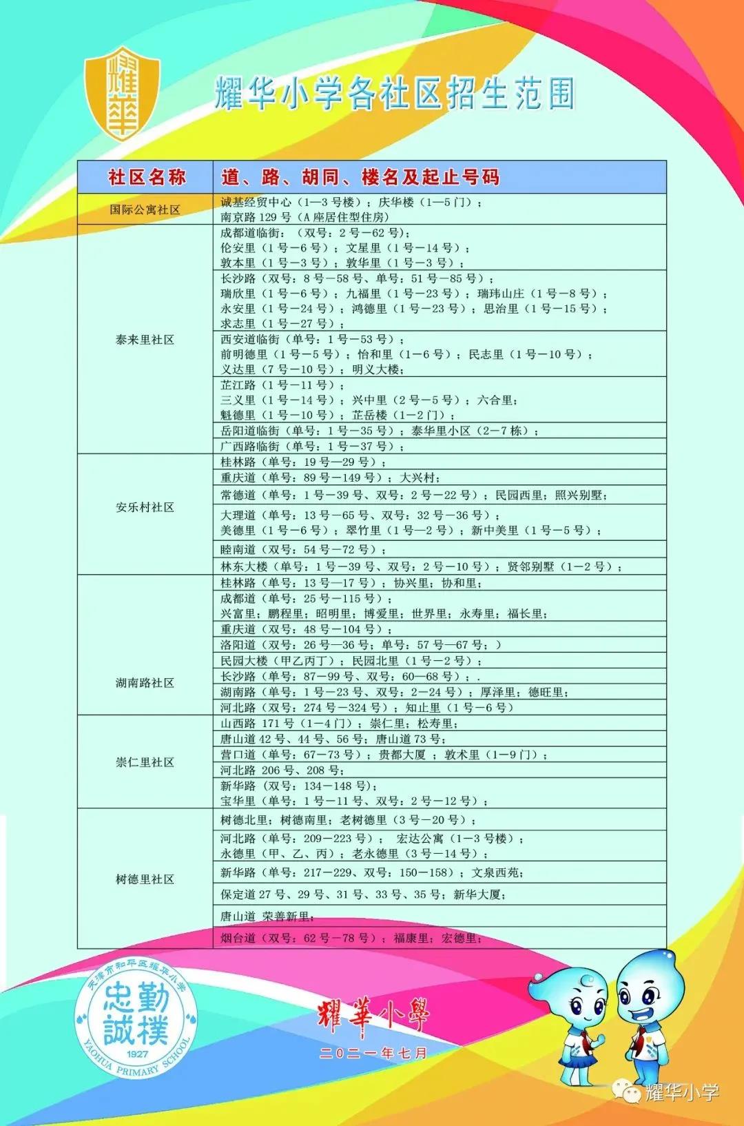 2021年天津市和平区耀华小学招生简章,含招生咨询电话和学区范围划分