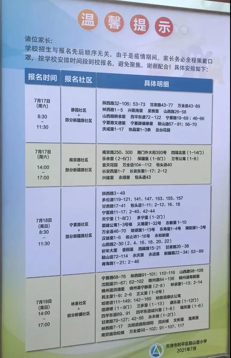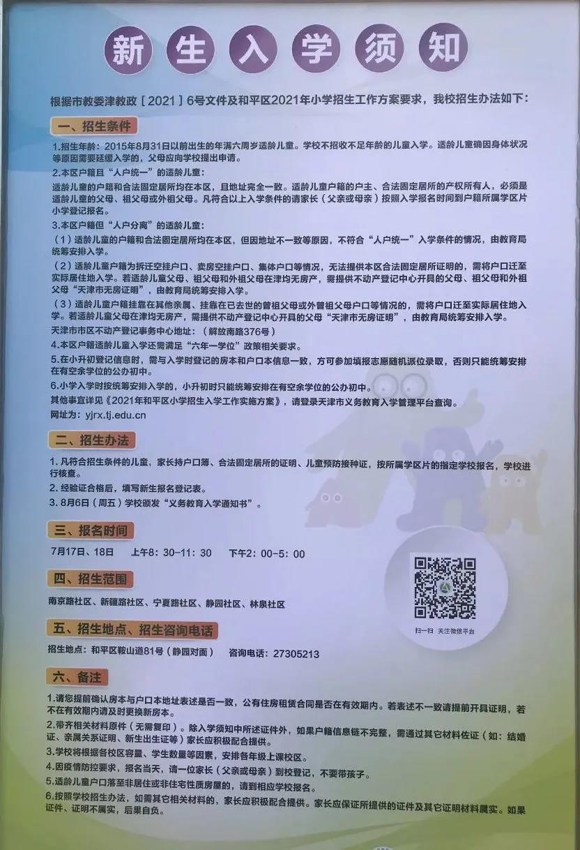 2021天津市和平区鞍山道小学招生简章,含招生咨询电话和学区范围划分