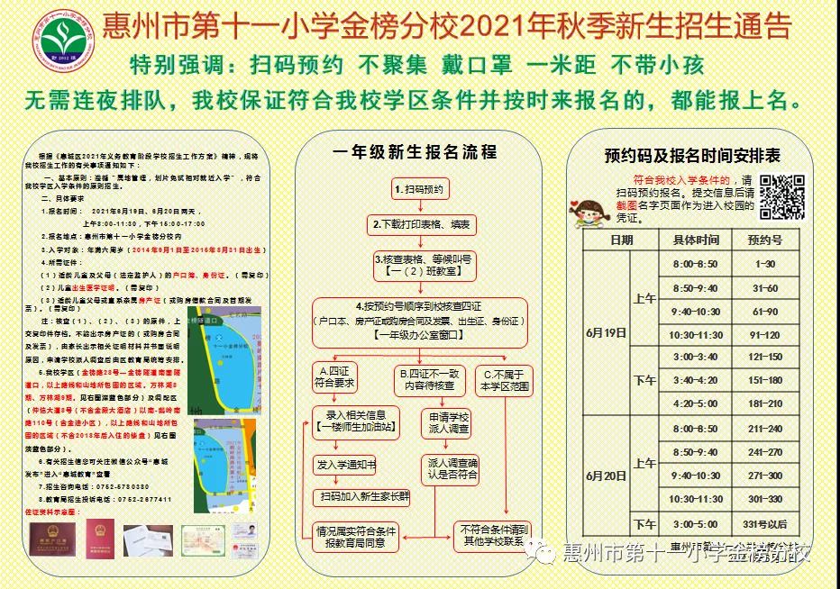 为了做好2021年秋季一年级新生报名工作,根据《惠城区2021年义务教育阶段学校招生工作方案》精神,现将我校招生工作的有关事项通知如下: