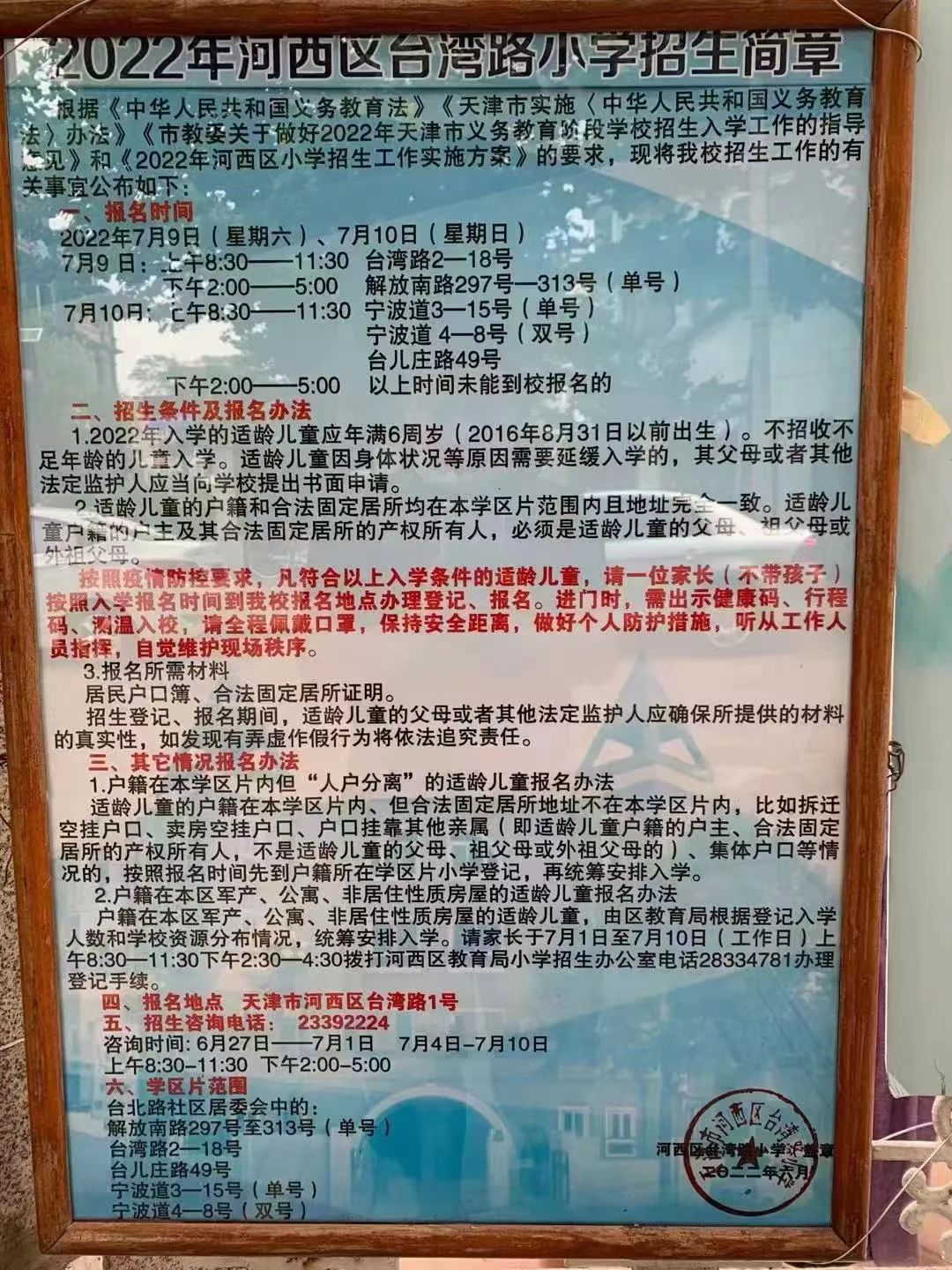 2022年天津市河西区台湾路小学招生简章,含招生咨询电话和学区范围划分