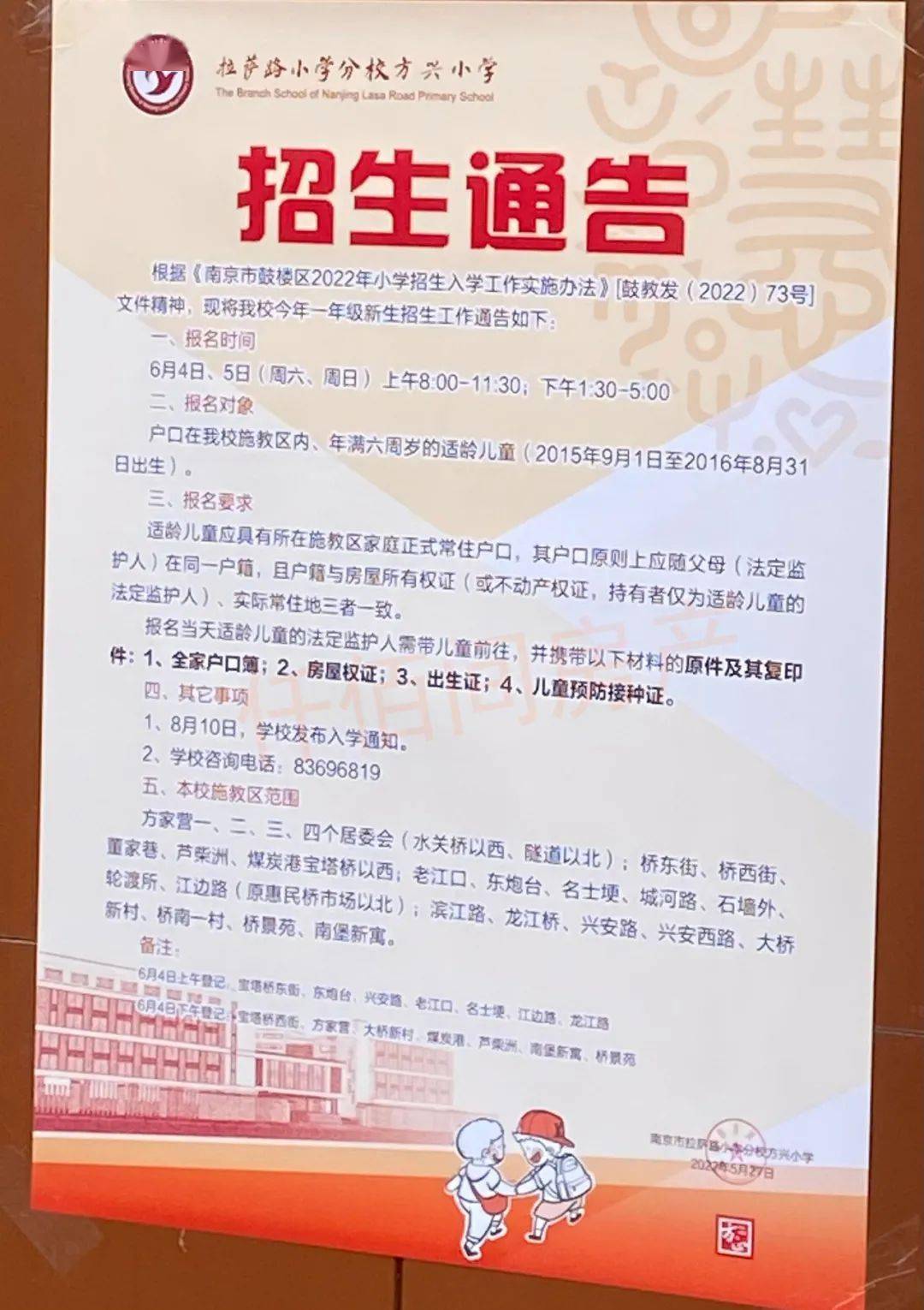 2022年南京市鼓楼区方兴小学招生简章,含招生咨询电话和学区范围划分