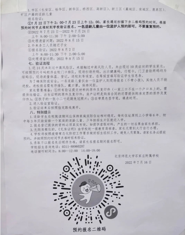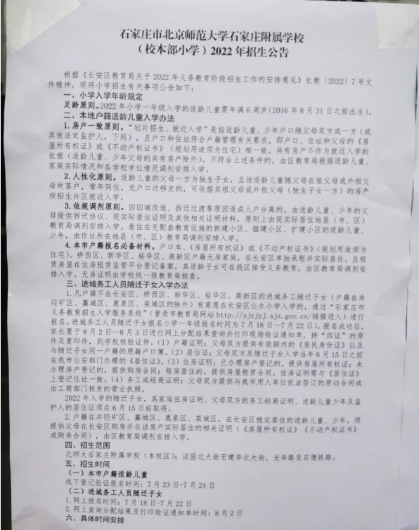 2022年石家庄市北京师范大学石家庄附属学校校本部小学招生简章,含招生咨询电话