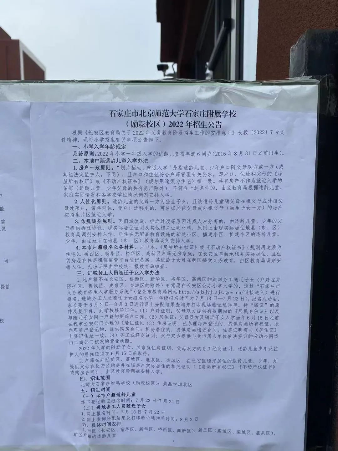 2022年石家庄市北京师范大学石家庄附属学校励耘校区招生简章,含招生咨询电话
