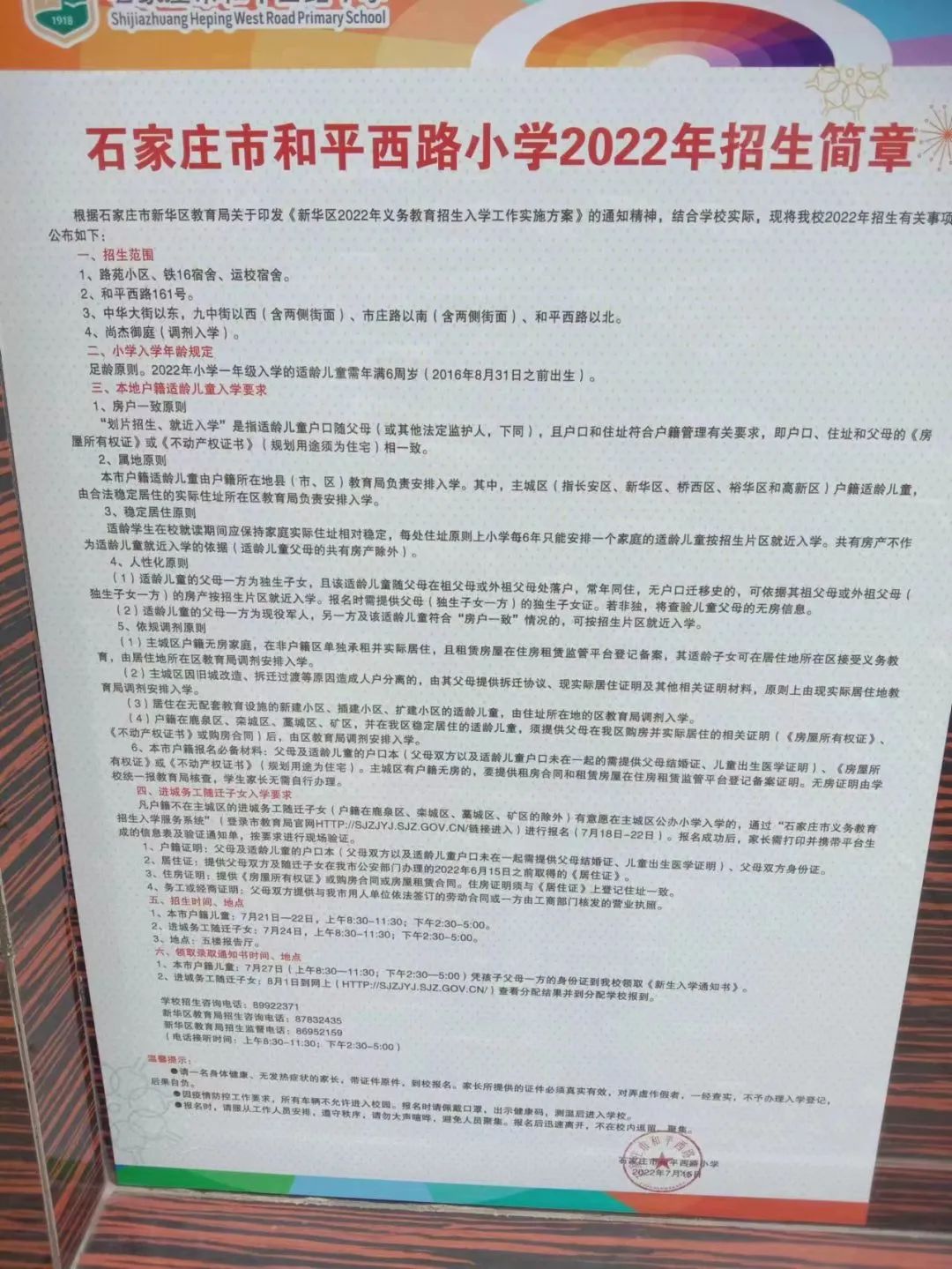 2022年石家庄市新华区和平西路小学招生简章,含招生咨询电话
