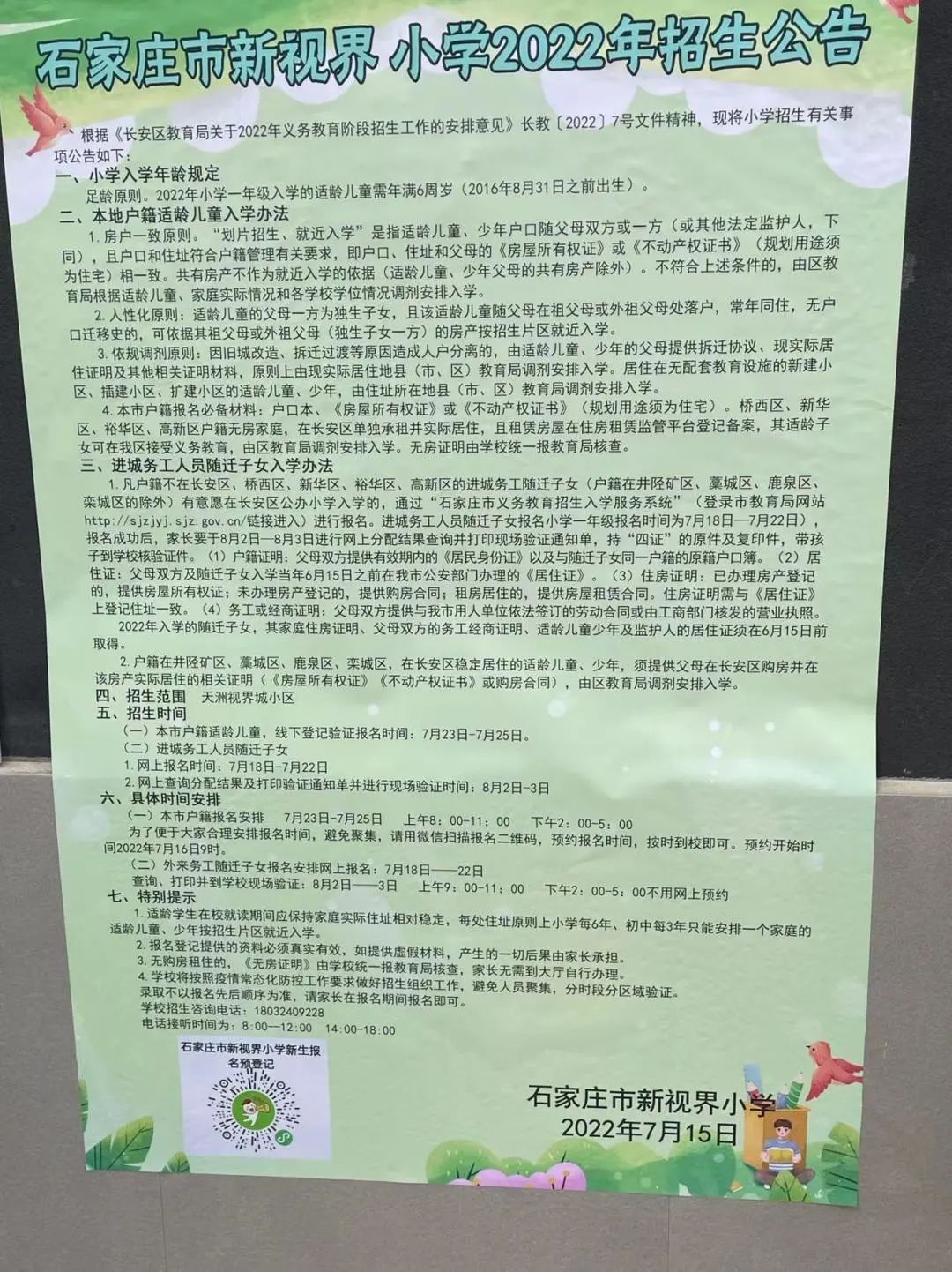 2022年石家庄市长安区新视界小学招生简章,含招生咨询电话