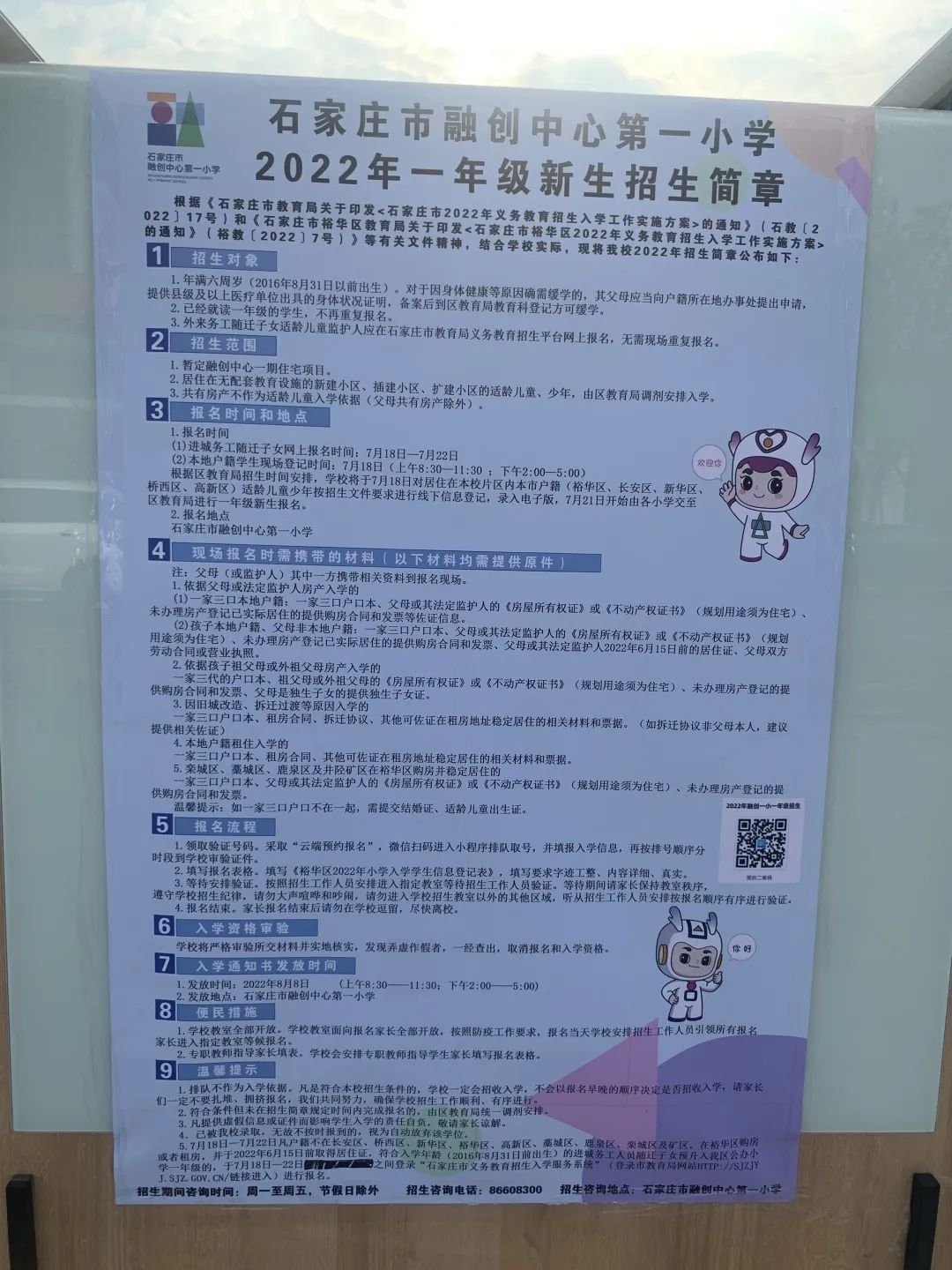 2022年石家庄市融创一小融创中心第一小学招生简章,含招生咨询电话和小学学区范围施教区范围划分