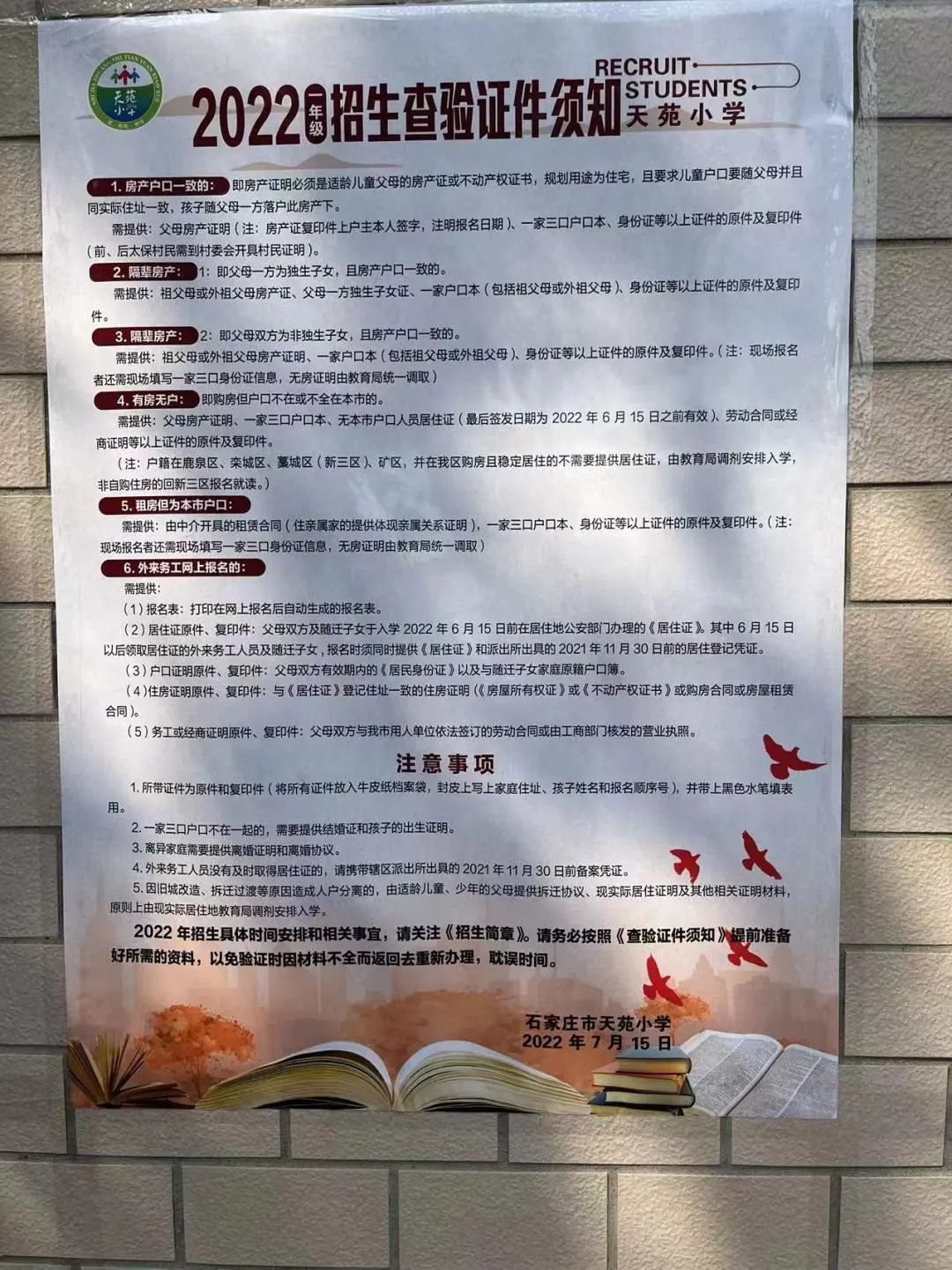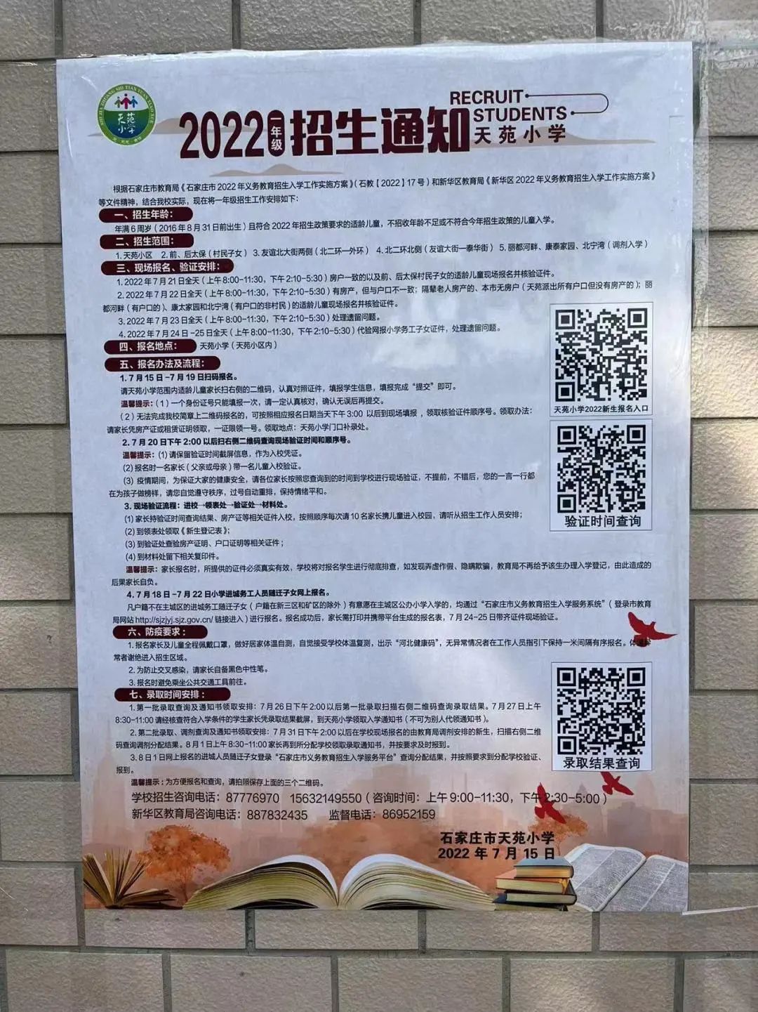 2022年石家庄市天苑小学招生简章,含招生咨询电话和小学学区范围施教区范围划分