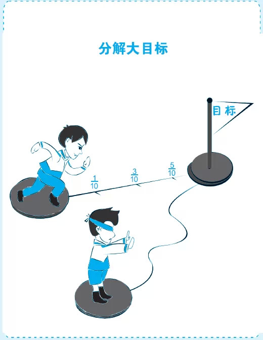 第三组的同学,在一开始就被告知了目的地、距离,并在路上设有路标.于是,他们有说有笑地走过了1/10路标、3/10路标、5/10路标……竟然就这样一路愉快地到达了目的地。