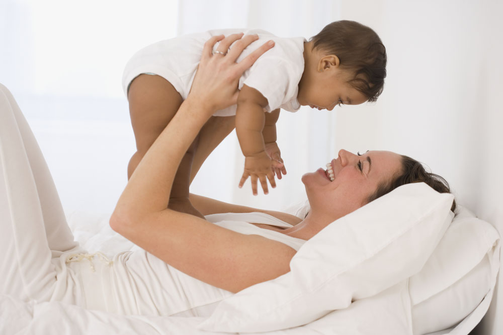 17. 父母卧抱孩子︰这是个很亲密的姿势,如果孩子更小,可以尝试以双手托起来呢。