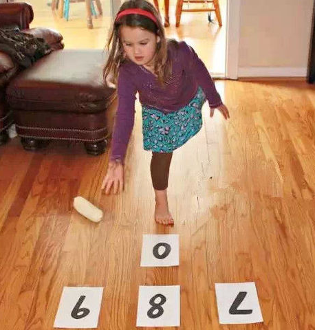 玩法①:通过向爸妈的手机号码数字顺序投出沙包,巩固记忆。