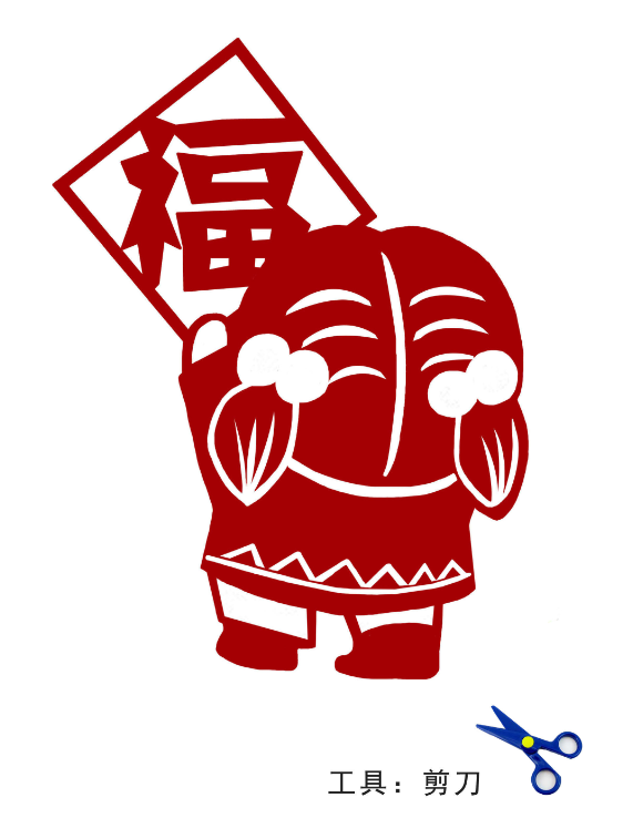 下载填色卡、剪纸图样、书法描红等素材,画“福”、剪“福”、写“福”