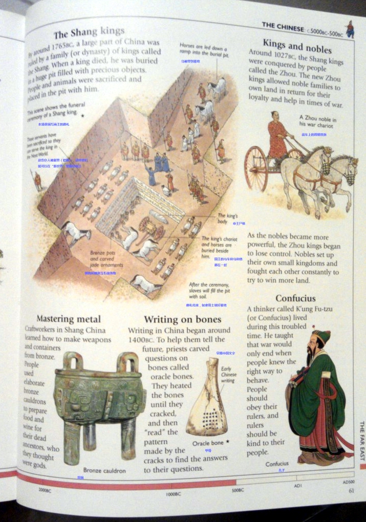 大约在公元前1765年,中国很大一片区域被一个被为“商”的家庭(或王朝)的帝王统治。当帝王死后,他被埋在一个巨大的土坑里,里面装满了珍宝,人和动物也被祭献,和帝王一起下葬。