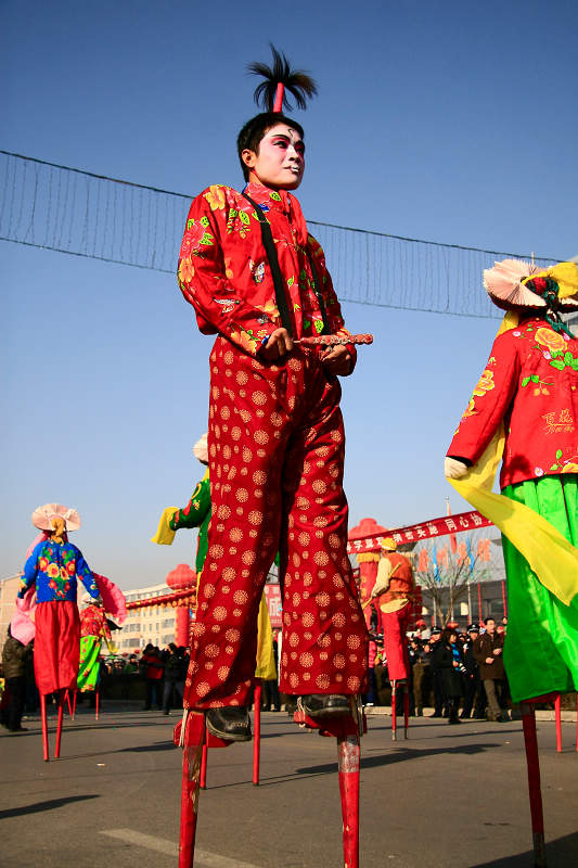 高跷会一般由群众自发串连组织起来的。正月十一、十二开始踩街,寓意告知人们在众多的民间花会中,今年挂个号。正月十五正式上街,一直到十八方告结束。小编记得这个节目一般都是和舞龙灯排在一起,当然各地有各地不同的风俗,有些地方是以扭秧歌的形式取代。