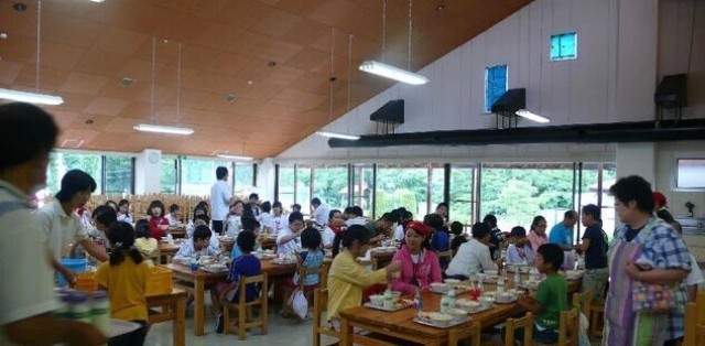 日本的小朋友,已经做好在等我们了,没人先开始吃饭,等到我们的学生都坐下来,他们才动了筷子。