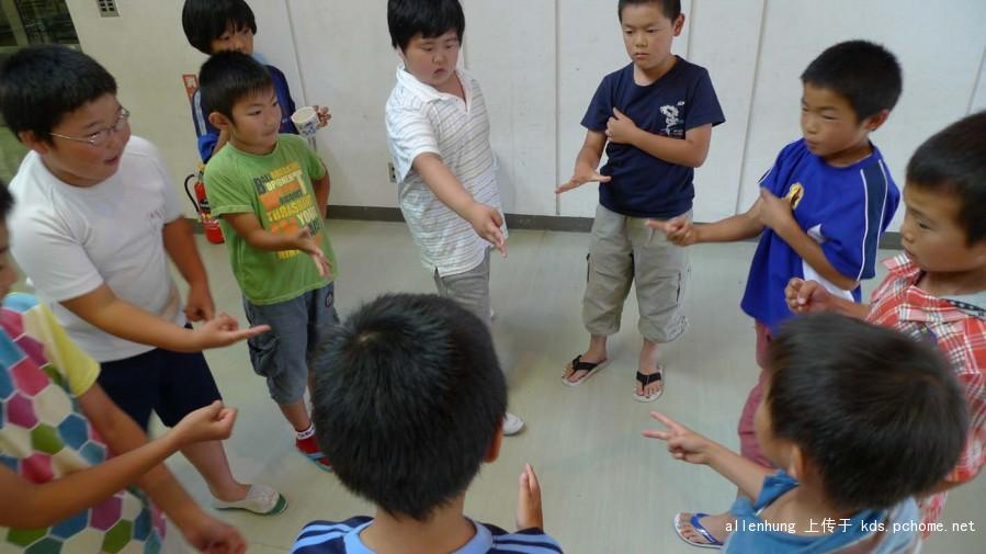 这时候,我们的翻译用日语说了句什么,很多孩子高高举起了手。然后这些孩子,就跑到前面围成一个圈,猜拳,玩石头剪刀布。最后一个一个被淘汰,剩下几个胜出学生。