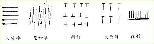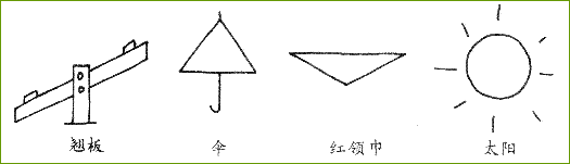 总之,这些形与形的组成可绘成各种人物、动物、花鸟、山水、房屋、树、水果、家具等简易美丽的画面。