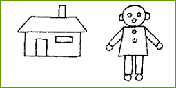 长方形和梯形可组成房子。长方形、梯形、圆形可组成娃娃。