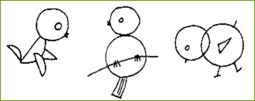 圆形、半圆形、长方形、三角形可组成鸟、小鸡。