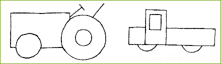 长方形、圆形、半圆形可组成汽车、拖拉机等。