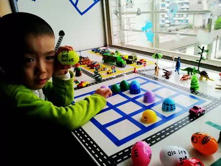 这个游戏就是ipad、电脑上的那些翻牌记忆游戏,把ipad中的游戏用生活中的材料来再现,孩子玩的更欢!事先准备好两两相同颜色的8组毛球,随机的抠在每个彩蛋下面。孩子一次只能翻2个,翻到2个毛球相同就拿走,不同的就再扣回去,最后把所有的彩蛋都拿走就成功了。