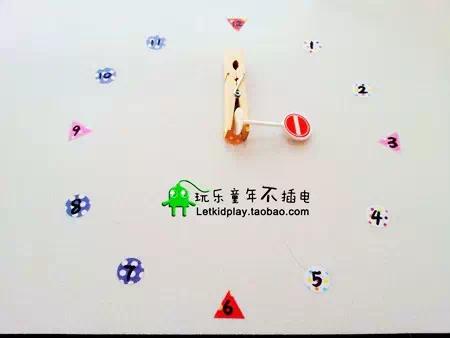 这是我见过的最有创意的认表游戏了。你可以和孩子一起用装饰贴纸贴出12个数字,然后用笔填上数字,用小夹子加上道路标示牌做时针和秒针。超有意思。